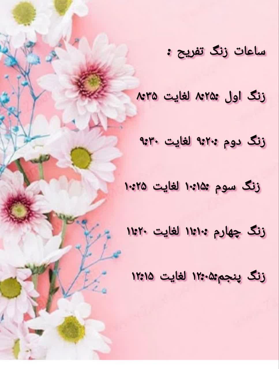 ساعات کلاسی و زنگ های تفریح